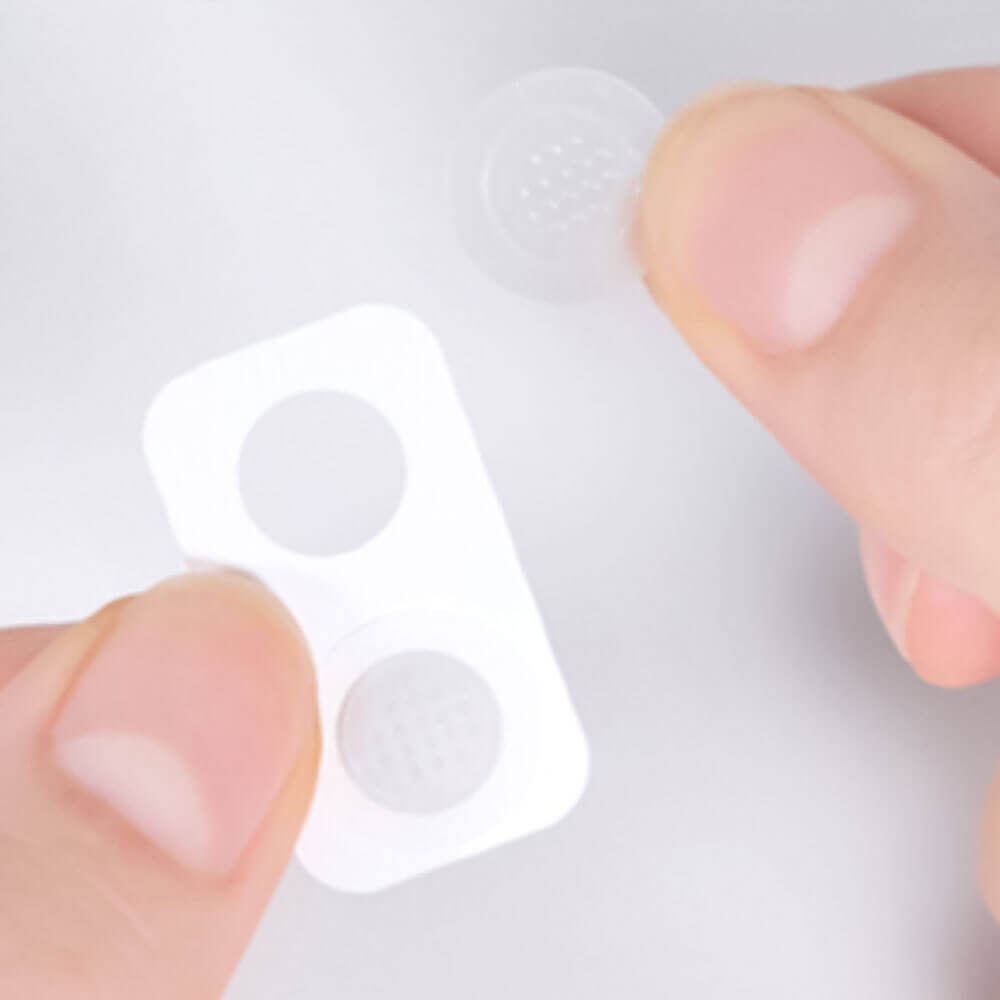 Remove the protective film from the patch. Without touching the center, gently apply the patch to the desired area on the face. Leave on for 2–8 hours.
